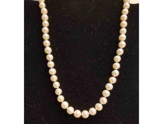 Pearl Necklace with Silver Rose Clasp. Classic look for everyday wear!