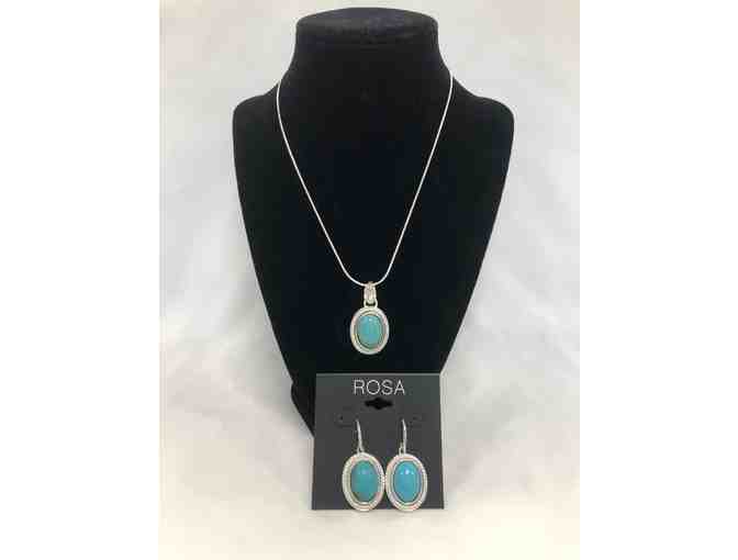 Rosa Turquoise Pendant on silver chain with matching earrings