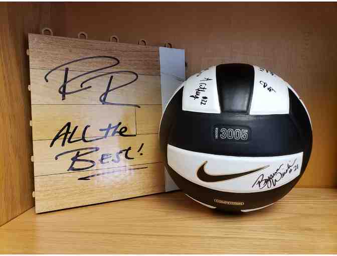 Add this volleyball, poster signed by the 2018 Women's Volleyball team and 2014 Championship Floor Signed by Russ Rose, to your memorabilia collection today!!