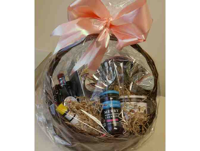 Chivas Regal Whiskey with Stonewall Kitchen Cherries and mixed nuts along with Martini & Rossi Sweet Vermouth and Bitters along with Manhattan Glasses and Disposable Manhattan plates.