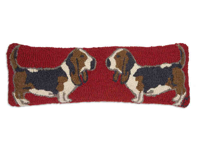 8" x 24" hand hooked pillow, made with 100% natural wool. Zippered velveteen backing with poly-fill pillow insert.