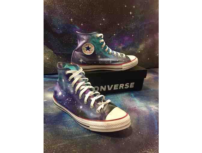 I was inspired by a series of paintings I have been working on over the years, which focus heavily on the universe. Many of the pieces in this series play with philosophical ideas and belief systems with relation to the afterlife, space and it's infinite galaxies.