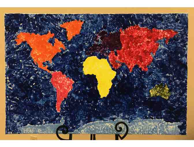 Our 1st grade has created an original piece of art in conjuction with their study and exploration of the Lord's creation of the world. This stretched canvas piece measures 24" x 36". Handprints and fingerprints of each student make up this colorful piece and their choice of vibrant colors help echo the proclamation of our Lord after His work of creation, "And God saw that it was good."