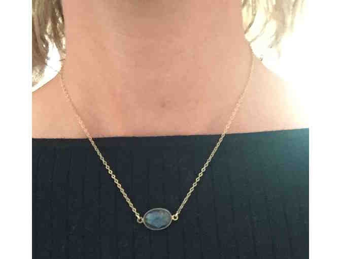 Labradorite samll pendant on 14" gold plated chain.