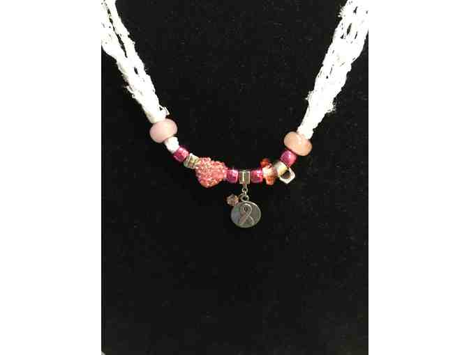 Hand made Necklace with Breast Cancer Ribbon Bead