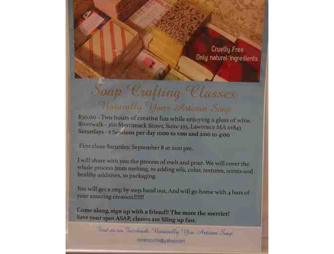 You will learn the process of melt and pour and adding oils, color, textures and packaging! Go home with 4 bars of your own creation.