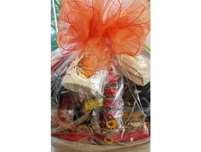 Everything you need to entertain this fall. Fall napkins for 60. Paper plates, beverage napkins, Fleece throw, tablecloth, wines in a beautiful basket!