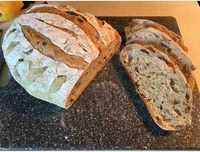One fresh baked sourdough loaf two times a month for three months in your choice of flavor (plain, chocolate chip, chocolate chocolate and peanut butter chip, olive thyme, roasted garlic, dill white cheddar, apple oatmeal, banana).