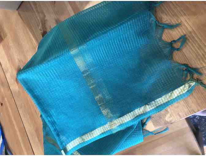 Beautiful emerald green and gold cotton scarf from India.