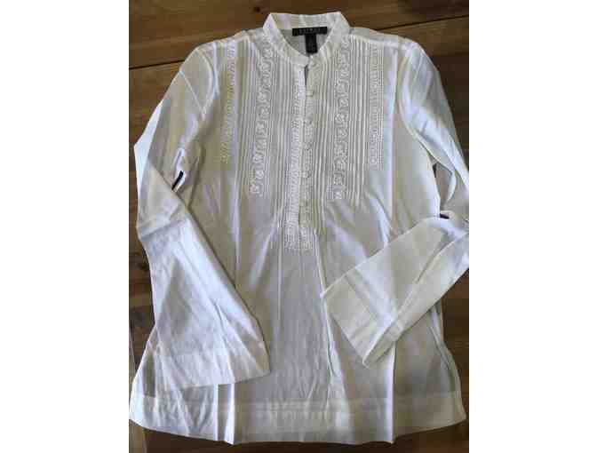 White embroidered bib ladies blouse by Lauren by Ralph Lauren - Size Sm