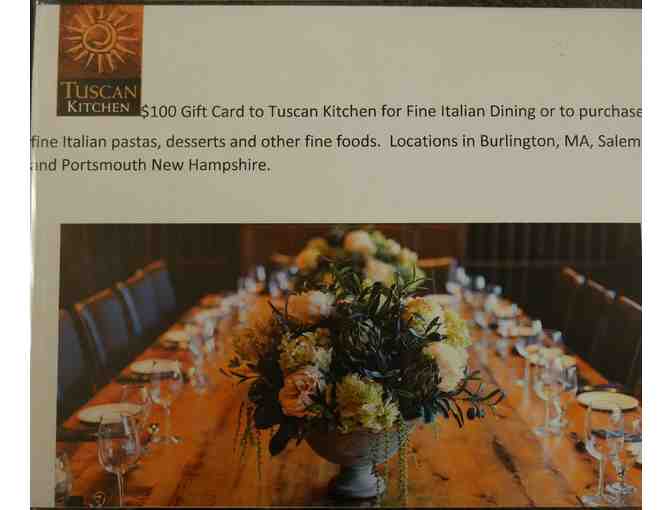 $100 Gift Card to Tuscan Kitchen for Fine Italian Dining or to purchase fine Italian pastas, desserts and other fine foods. Locations include Burlington, MA, Salem NH or Portsmouth NH.