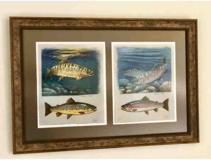 This double print of a brown trout and a rainbow trout is ready to hang.