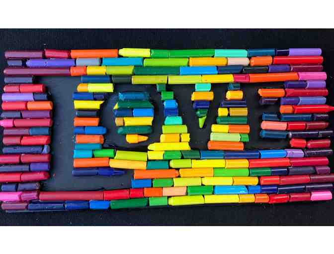 Using every color in the rainbow and heaps of creativity, our Junior Kindergarten students have created a masterpiece. Piles of crayons were peeled, cracked, broken and assembled into a lovely framed work of art using the word "LOVE". This will be a keepsake to be enjoyed for years to come.
