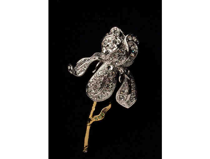 Pewter with Silver & Gold Finish inset with Swarovski Crystals; 2.75”. Adapted from a Tiffany piece in the Walters Art Museum.
