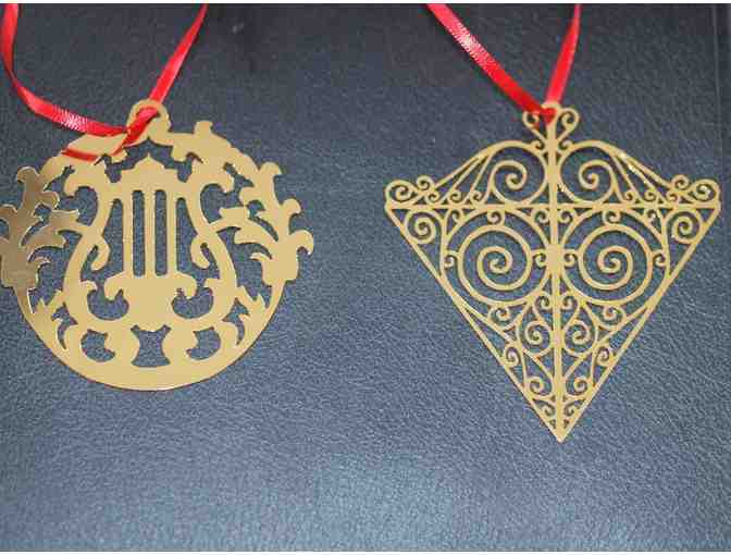 Start your own holiday traditions with this set of six 24kt gold plated Christmas ornaments made by the original Liberty Workshop of West Stockbridge, MA. Inspired by historic design and architecture. Never tarnish, always beautiful! Sure to light up any tree!