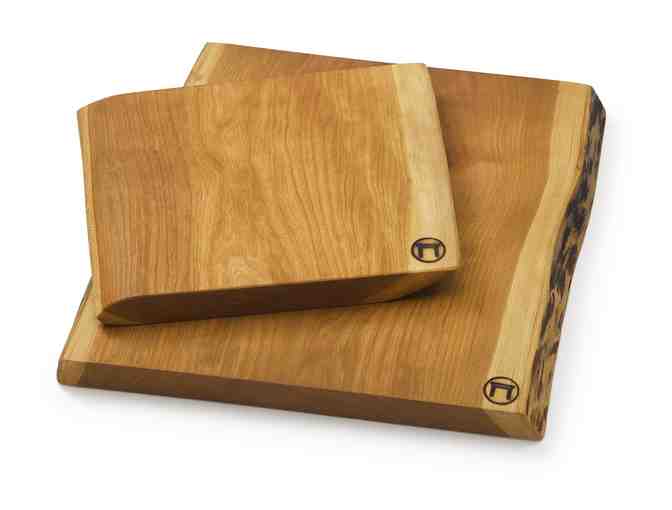 Beautiful, live-edge solid cherry cutting board. Use these for serving or as a cutting board. These are one of their most popular boards, and make wonderful gifts. Finished in their food-safe Boiled Walnut Oil.