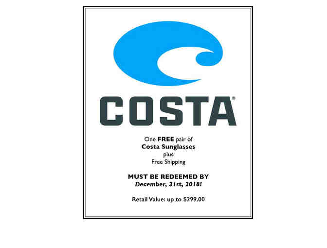 One pair of Costa Sunglasses plus free shipping. The winning bidder will receive a voucher number to use on the Costa website - up to $299.