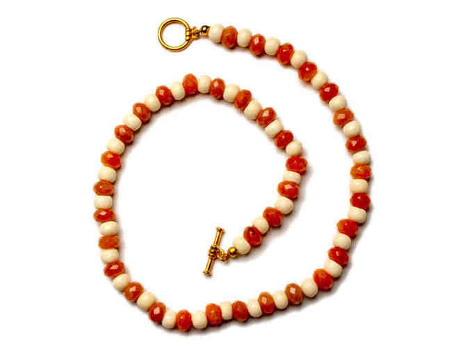 Bone and Carnelian Bead Necklace with Toggle Clasp
