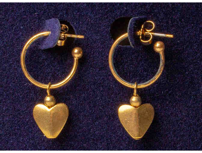Afghani Heart Hoop Earrings - Pewter with Gold Finish.