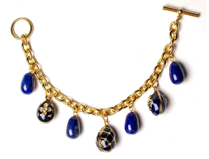 Fabergé Egg Bracelet - Four Lapis Eggs with Three Enameled Eggs embellished with Swarovski Crystals.