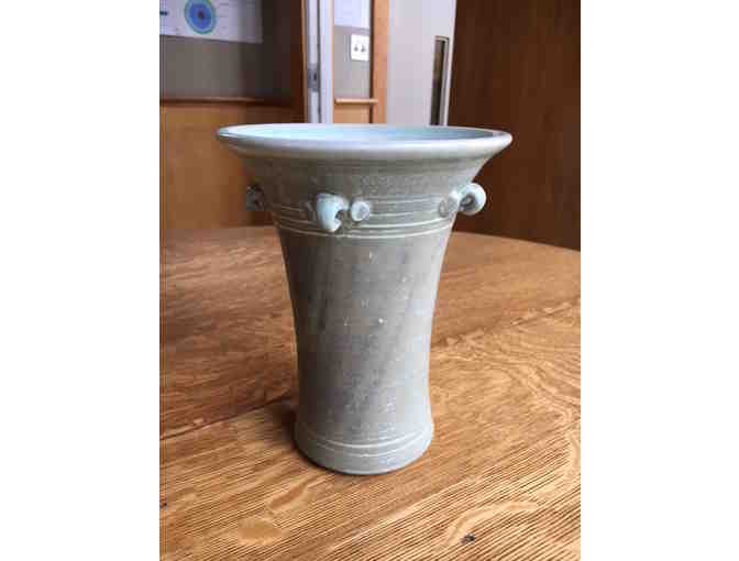 Offered here is a beautiful hand-thrown vase by Elizabeth Saslaw of York Hill Pottery in Lincoln, Vermont.