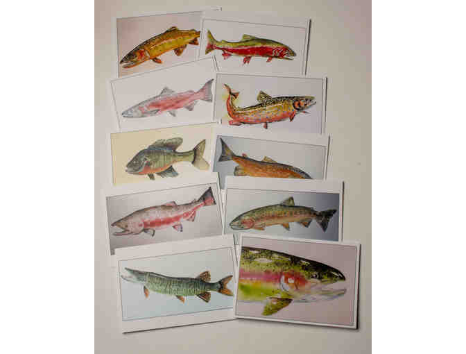 Set of ten (10) - 5 x 3.5” Fish Note Cards with Envelopes by Aspen Artist Amy Beidleman