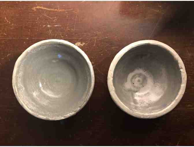 Celeste has created for the auction a set of two matching bowls. They measure 5'' in diameter and 2'' deep. Perfect for dipping sauce, small snacks, or put them on your desk to collect loose paperclips!