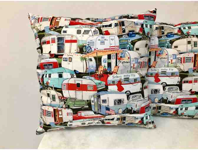 These two adorable pillows will liven up any living room – or better yet, camper trailer! Handmade with a custom 'Sisters on the Fly' trailer pattern, each pillow is 10" x 10". The winning bidder will also receive two microwave bowl holders to keep your fingers from burning when heating your bowl of soup! (photo not available)