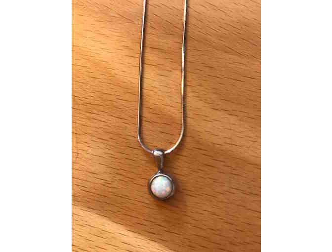 Sleek 17 1/2" silver chain holds 1/4" opal in simple silver setting.