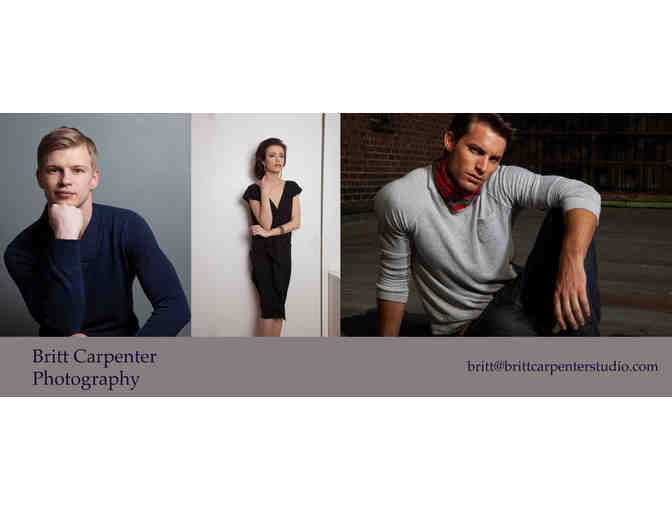 Individual or couple photographic portrait by Fashion/Celebrity Photographer Britt Carpenter. Including one to two looks, and lite retouching for two images, you can chose to have your portrait in your home, office, or an outside location.