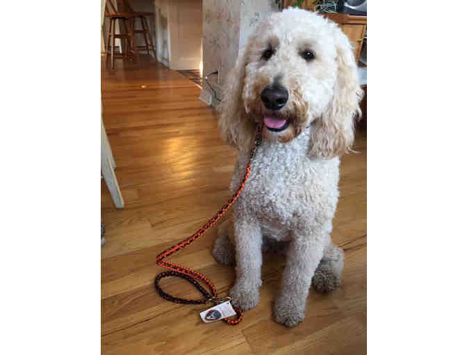 Heavy Duty Hiking Dog Lead with One Collar - Para cord survival dog lead including a 17 collar. Total length of the lead is 36”. Para cord is light weight nylon Kernmantle rope. Colors are black and orange. Both leash and handle are detachable.