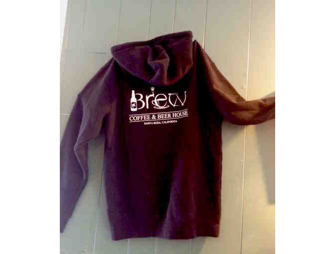 Black-colored Brew Coffee and Beer House sweat shirt with hoodie. Size Small, Medium or Large.
