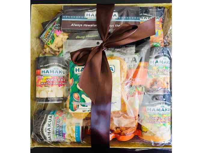 This delicious Hamakua Macadamia Nut Gift Tray ($50 value) includes various flavors of macadamia nuts, chocolate and cookies. Perfect for a holiday gift!