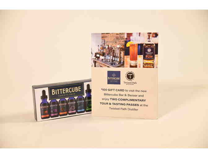 Up your cocktail game with this Bittercube Bitters variety pack - includes six 10 oz bottles of bitters: Cherry Bark Vanilla, Bolivar, Orange, Jamaican No. 2, Blackstrap and Jamaican No. 1. Bittercube Bitters are created in Milwaukee, WI, by hand with real botanicals. The package includes a $100 gift card to visit the new Bittercube Bar & Bazaa. Enjoy delicious drinks, shop in their store or use toward a cocktail class, workshop or lab session. Also, enjoy two Complementary Tour & Tasting to the Twisted Path Distillery. And of course, all tours end with a complimentary tasting of their spirit lineup. *Tours are on Saturdays only.