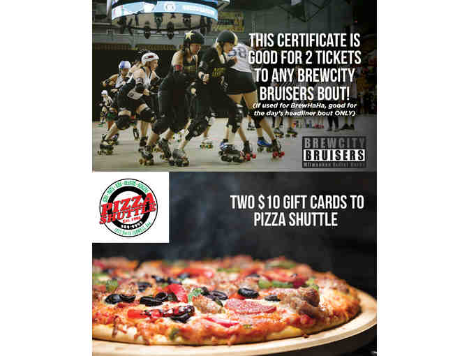 This certificate is good for two (2) tickets to any Brewcity Bruisers bout (if used for BrewHaHa, good for the day’s headliner bout ONLY). Also includes a $20 gift card to MobCraft Taproom and two (2) $10 gift cards to Pizza Shuttle.