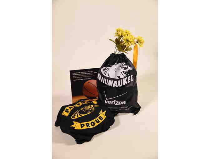 Show your Panther pride with four (4) single game tickets to a 2018 - 2019 Milwaukee Panthers Men's Basketball Game. The package also includes a youth small Panther Proud t-shirt, Panther drawstring backpack, sticker and two (2) $15 gift cards to Ian's Pizza