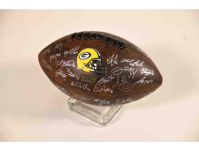 The Green Bay Packers have donated this awesome showpiece! Original signatures were obtained from all players and coaching staff at the beginning of the 2018 regular season, and those signatures were then transferred to the football. The ball comes with a certificate of donation by the Green Bay Packers.