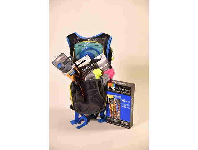 Looking for the perfect gift for the runner in your life? This runner's hydration backpack is filled with all sorts of goodies, including a $50 gift card to Performance Running Outfitters, two (2) pairs of Feetures High Performance running socks (1 pair men's L / 1 pair women's M), a Camelbak Chute Leak Proof Bottle, Under Armour Flash Sunglasses, and a box of delicious Kind Bars.