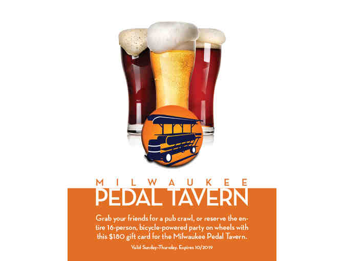 Grab your friends for a pub crawl, or reserve the entire 16-person, bicycle-powered party on wheels with this $180 gift card for the Milwaukee Pedal Tavern. Valid Sunday - Thursday