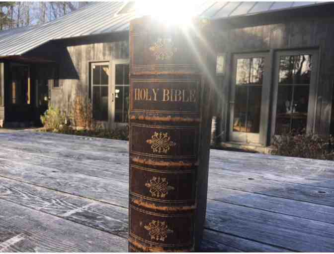Beautiful, large (12''x9''x3'' roughly 5lbs) 150 year-old (1870) leather-bound bible. All pages excellent condition. Belonged to Lathrop family on the Upper Notch Rd in Lincoln and remained in their farmhouse when sold out of the family in the 40's.