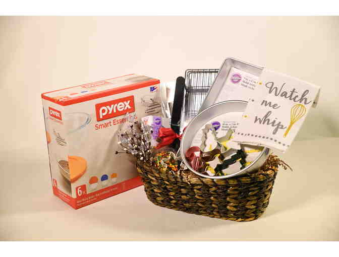 With the holiday's approaching, you'll make great use out of this new baking set, including bakers racks, mini cookie sheet, Pyrex 6-piece mixing bowl set, Wilton 10" x 2" round pan, 9" x 13" sheet pan, DeCoPac 4 piece piping tips, Wilton White Vanilla Fondant mix, fall baking sprinkles, assortment of xmas cookie cutters, icing spatula and cookie mix.
