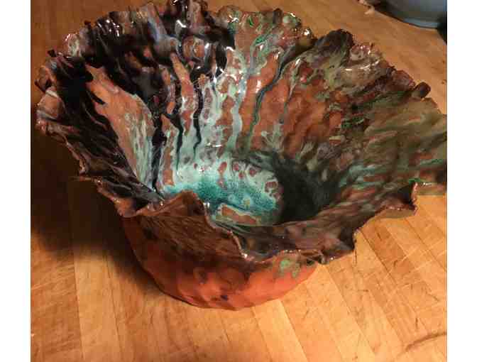 This is about to be your lucky day. If you play it right, (win the bid!) this wondrous, hand built, glazed, stoneware bowl by wonderful and multidisciplinary artist, Dove Drury Hornbuckle can become an essential part of your home. His work isn't like anything you've seen before - these bowls are eerily beautiful, innovative, and just gorgeous treasures. They are at once vessels of nature and quote urban life. Once you own one, you won't be able to fathom why you didn't have one before.