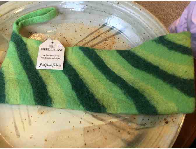Brilliant shades of green this utility is also a piece of art. Cushioned from the felt, it makes storing your knitting needles a pleasure. It is a fair trade item from Nepal. Handmade by women artisans...working to provide new livelihood opportunities and reliable income.