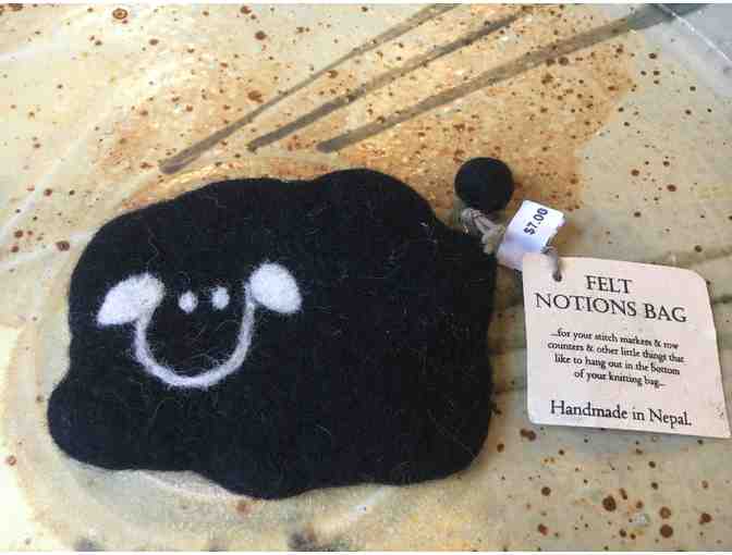 Small zippered purse for your your stitch markers and row counters and other little things that like to hang out in the bottom of your knitting bag. Adorable "sheep" smiley face. Handmade in Nepal.