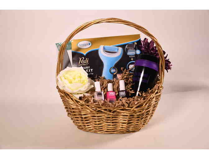 En Avant Nail Studio in Madison has donated this beautiful basket featuring a $50 gift card for any of their services, plus an Amope Luxury Pro Pedicure Kit, a foot file, Emma's Nail Polishes, and Travel Mug