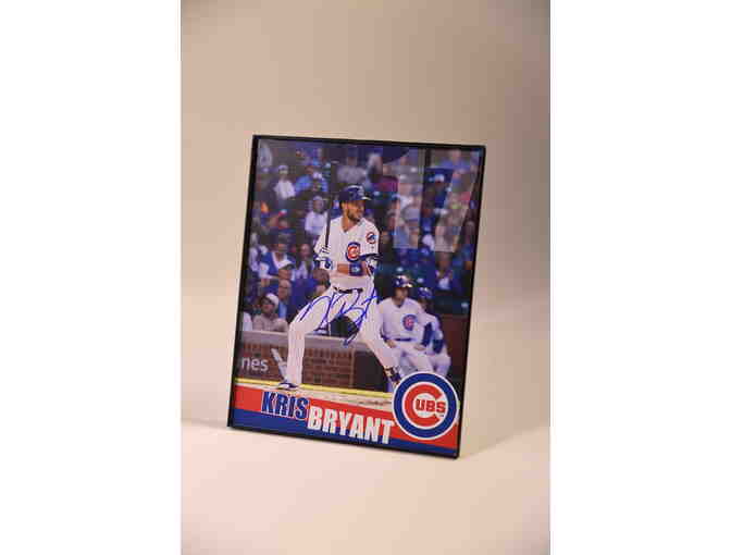 This autographed photo features Chicago Cubs 3rd Baseman, Kris Bryant #17