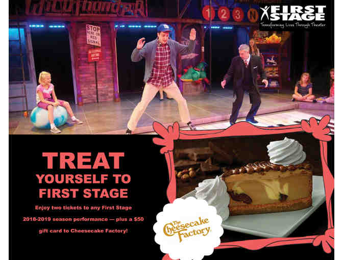 Experience the magic of First Stage with this certificate good for two tickets to attend any weekend or evening performance in the 2018 - 2019 season at First Stage (excluding the holiday production, First Steps series and Young Company shows). And afterwards, grab dinner with this $50 gift card to the Cheesecake Factory