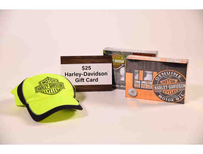 Stop in at Wisconsin Harley-Davidson®, the area's fastest growing dealership, to pick up some swag with this $25.00 gift card and a Harley-Davidson Reflective Baseball Cap, two packages of H-D golf balls