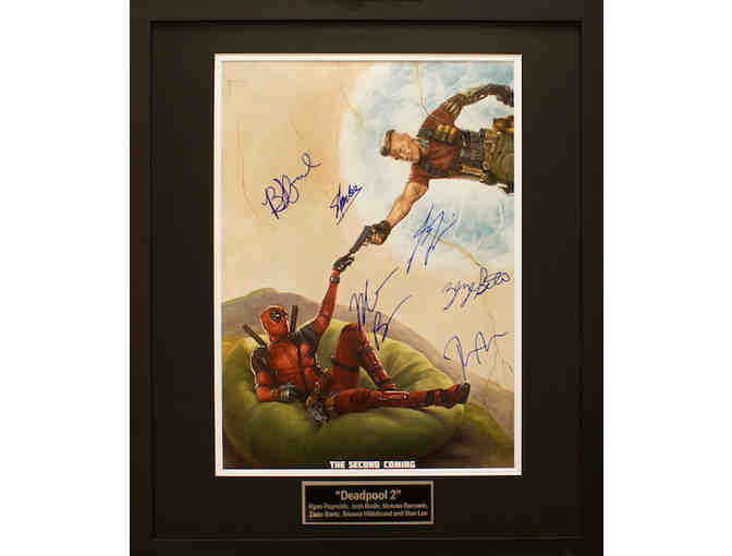 Hey, all you DEADPOOL fans! This DEADPOOL 2 Poster is signed by: Ryan Reynolds, Josh Brolin, Morena Baccarin, Zazie Beetz, Brianna Hildebrand and Stan Lee