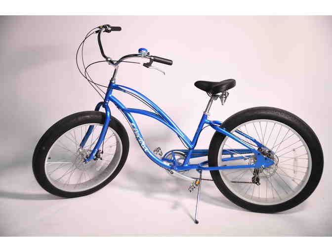 Look seriously cool riding this blue Electra Cruiser bike. The Lux Fat Tire 7D maintains a classic cruiser silhouette while giving you 7 gears for getting around town.